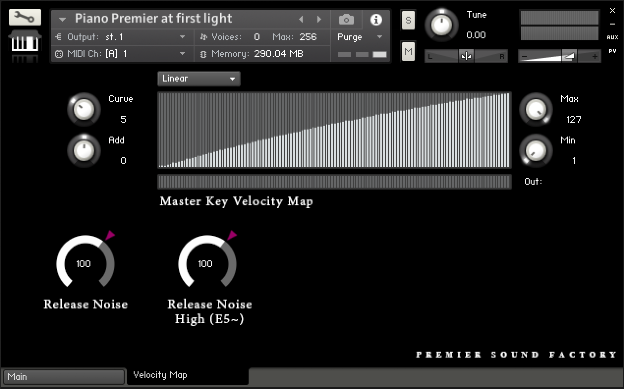 The piano’s action at the higher keys is different from lower ones. The default settings on both attenuators are the real sounds of studio recording, but can be adjusted to fit your project.