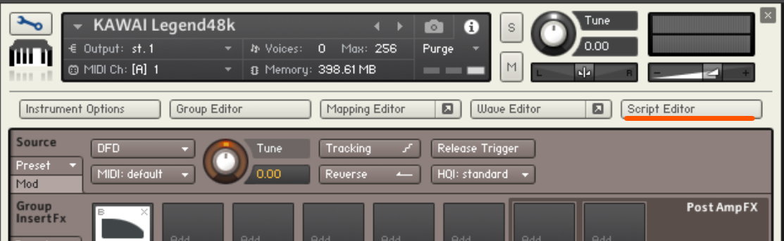 The KAWAI Legend includes only one best combination of sounds from multiple microphones. Please start a new 96kHz session in your DAW, launch Kontakt and open KAWAI Legend.