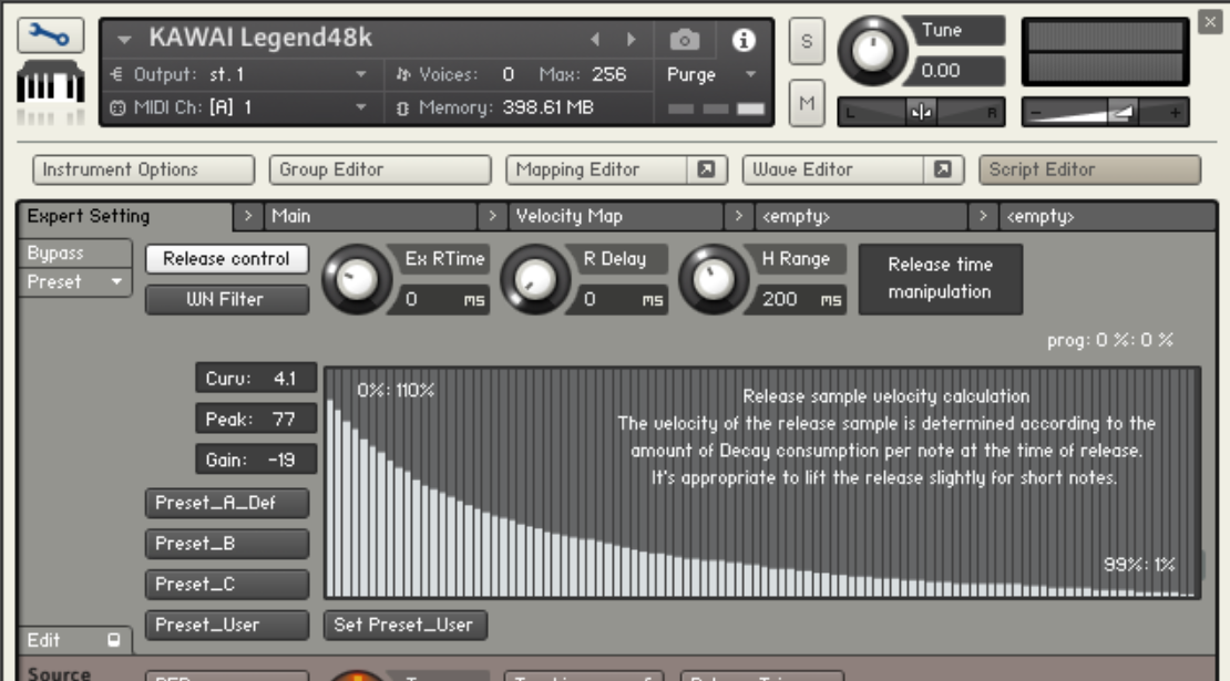 Preset C: In addition to Preset B, this is a model with a slight increase in Ex RTime and R Delay. In the actual machine, it is an image when the damper felt is a little loose. Loosely translated, it means “A. Faithful to the original, B. A little more releases, C. More”.
